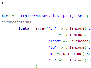 Prva možnost je brez skripte, da uporabimo URL. Druga možnost pa je z uporabo PHP skripte. V tej lekciji vam bom pokazal, kako poslati SMS s pomočjo PHP skripte. Na strežniku morate v tem primeru imeti nameščeno podporo za PHP. Skripto prenesite, jo uredite ter jo preimenujte v sms1.php kasneje jo prenesite na strežnik v korensko mapo sistema /. |