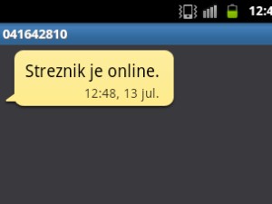 Čez nekaj trenutkov boste prejeli SMS z besedilom "Strežnik je online.".