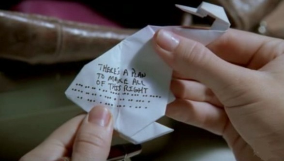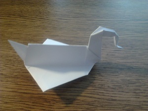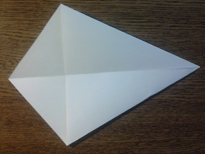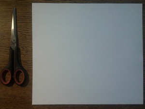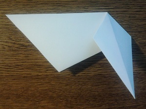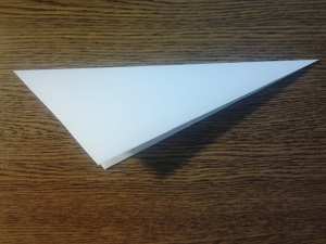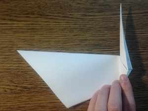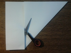 Zgornjo stranico lista poravnamo z stransko, tako, da dobimo kvadrat. Preostanek odrežemo.