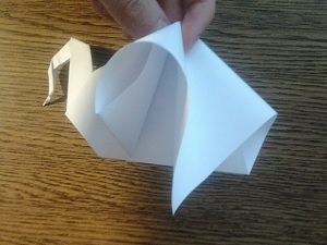 Sedaj je potrebno narediti rep. Špic, ki je prej spodaj gledal ven obrnemo do konca navzgor.