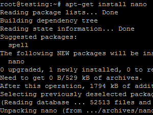 V tem vodiču bom namestil urejevalnik nano. apt-get install nano Urejevalnik, tudi namesti njegove alternative pico ter editor. Če uporabljamo Centos sistem vnesemo yum install nano |