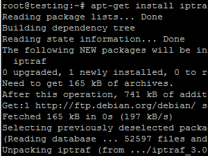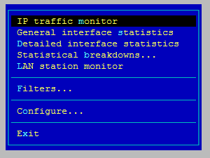 iptraf Izberite prvo možnost : Ip traffic monitor ter izberite mrežno kartico. Program deluje samo na določenih kernelih, tako da če imate ime mrežne kartice venet0:0, vas moram razočarati, da obstaja možnost, da vam program ne bo deloval. |