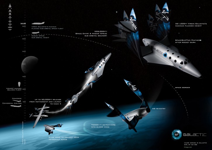 | Sicer je direktor podjetja Virgin napovedal prvi turistični vesoljski polet že to leto, vendar mu enega leta res ne moremo zameriti. Polet bo opravil s svojima starejšima sinovoma in naslednje leto poletel s prvim vesoljskim turističnim plovilom SpaceShipTwo, ki ima za seboj že precej testih poletov. Vesoljsko plovilo je zmožno leteti okoli 100 kilometrov nad Zemljo in v dveh urah in pol doseči tudi pet minut breztežnostnega stanja. Sporočili so tudi, da se je na polet prijavilo več kot 520 ljudi in za 200.000 dolarjev vreden polet v vesolje dobili tudi en teden pripravljalnih vaj. Prijave so možne na njihovi spletni strani.