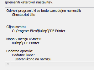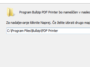 |  Če želimo program PDF Printer namestiti v drug direktorij, kliknemo Prebrskaj, če ne pustimo privzeto. | |||||