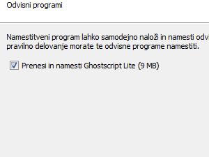 |  Za pravilno delovanje programa je potreba komponenta Ghostscript Litle, če imate to komponento že v sistemu, je ni potrebno ponovno prenašati. | |||||