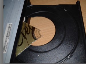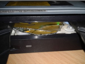 S sponko zasilno odprite vratca CD-ROM-a, nato izvlecite vse večje ostanke CD-ja.