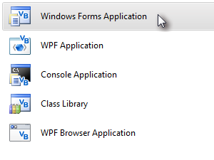 Odpre se nam novo okno, kjer bomo izbrali Windows Forms Application.