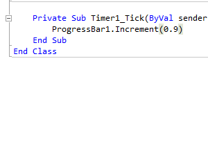 Progressbar1.Increment(0.9) Vrednost 0.9 lahko poljubno spreminjamo. Ta uravnava, kako hitro se progress bar naloži.