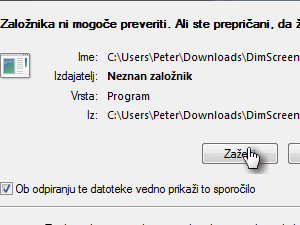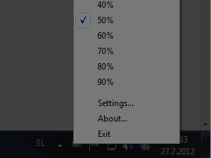 Program se nahaja v Območju za obvestila, zatemnitev si nastavljate z izbiro procentov (%).
