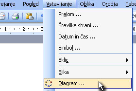 Diagram izbrišete tako, da ga označite (kliknite z miško na rob) in pritisnite tipko DEL. |