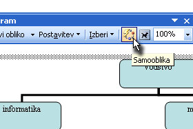 V orodni vrstici Organigram kliknite na ikono Samooblika. Organigram mora biti označen, če želite videti to orodno vrstico. |