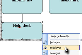 Jaz sem vpisal Help desk. Potem pa z desnim miškinim gumbom kliknite na rob tega diagrama in izberite Sodelavec. |
