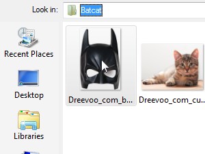 Odprite fotografijo poljubne mačke in kliknite tukaj, da si prenesete sliko Batmanove maske.