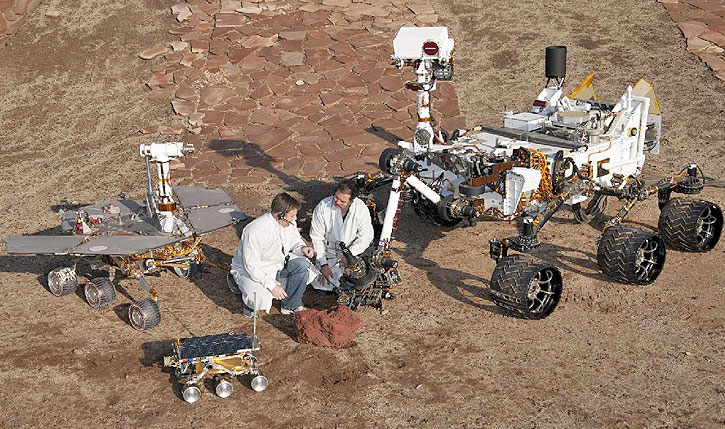 Že obstaja vozilo za človeško odpravo na Mars? Ne da bi vedel. Imeli smo že vozilo za vožnjo po Luni. Resda je tam šestkrat manjša težnost. Na Marsu pa bi recimo stokilogramski človek tam tehtal 38 kilogramov, 50-kilogramska deklica pa pol manj. Ko je Curiosity pristajal, sicer ima 899 kilogramov, je imel na Marsu 340 kilogramov. |