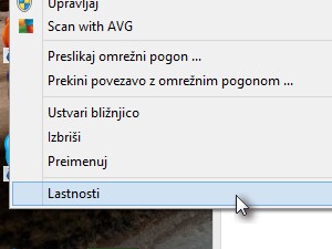 Odprite Lasnosti računalnika, to storite s desnim klikom na Računalnik ter odprite Lasnosti.