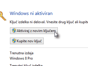 Če že imate ključ za aktivacijo sistema Windows 8 stisnite Aktiviraj z novim ključem, v nasprotem primeru ga kupite. Sistem Windows stane 59.99 EUR.