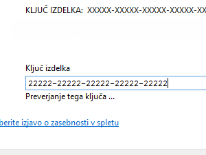 Vnesite ključ, počakajte par trenutkov, da sistem preveri pristnost originalne verzije ključa.