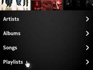 Predvajalnik glasbe se vam bo odprl, kjer odprete Playlists.