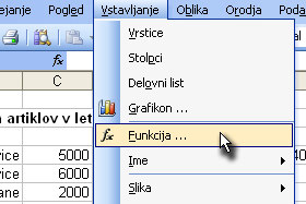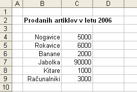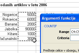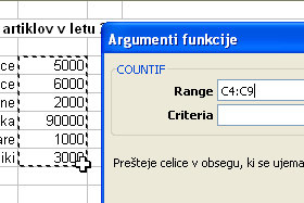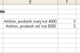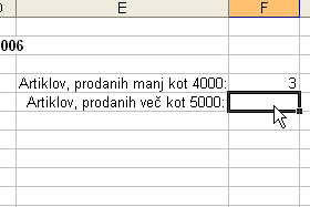 V poljubno celico vpišite "Artiklov, prodanih več kot 5000:" in kliknite na celico poleg teksta (glej sliko).