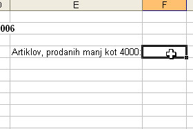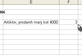 V poljubno celico vpišite tekst "Artiklov, prodanih manj kot 4000:" in označite celico poleg teksta (glej sliko).