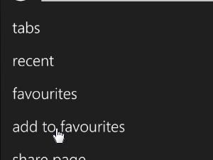 Če sedaj odprete poljubno stran, tapnete tri pikice v spodnjem desnem kotu zaslona, izberete favourites in na novo dodano find on page, se bo na vrhu spletne strani prikazala vrstica Search.