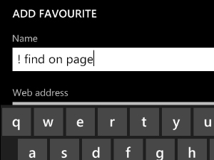 V polje Name (Ime) vpišite ime funkcionalnosti: npr. find on page (iskanje po strani), pred ime pa dodajte simbol ! (klicaj), tako da bo to vedno na vrhu seznama priljubljenih.