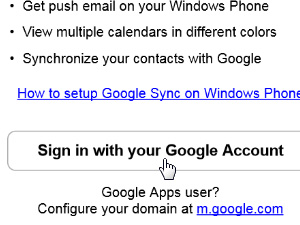 Z brskalnikom na vaši mobilni napravi obiščite naslednje Googlovo spletno mesto: http://m.google.com/sync.