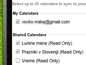 Spodaj pa lahko izbirate katere vaše (My Calendars) in katere deljene (Shared Calendars) želite videti v svoji napravi ter jih z njo tudi sinhronizirati.