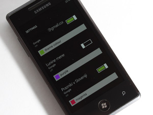 V Windows Phone napravi to storite tako, da odprete Calendar -> tapnete na tri pikice v spodnjem desnem kotu zaslona -> izberete settings. Tukaj lahko poljubno za vsak koledar nastavite v kakšni barvi naj bodo prikazani dogodki z le-tega koledarja ali ustavite sinhronizacijo z njim.