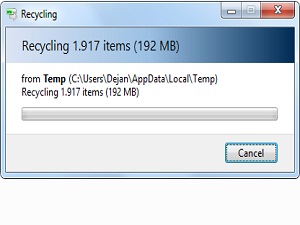 Najprej kliknemo Start in izberemo Zaženi. V novo okno vnesemo %temp% in pritisnemo Vredu.