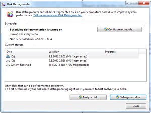 V novem oknu moramo najprej analizirati pogone, nato pa jih lahko degragmentiramo.