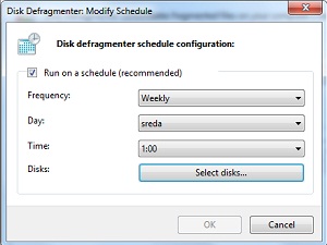 Nastavimo lahko tudi urnik, po katerem bo računalnik sam defragmentiral pogone.