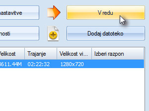 ![]() Sedaj smo vse nastavili. Kliknite na gumb V redu. Lahko bi dodali tudi več filmov za konvertiranje, če želite.