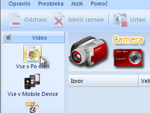 ![]() V programu v oddelku Video kliknite na Vse v Po meri. |