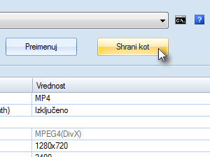 ![]() Ko boste nastavili iste vrednosti, kliknite na gumb Shrani kot. |