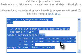 Dolga HTML koda se vam je prilepila, takoj za tekstom "Tukaj bo števec = ".