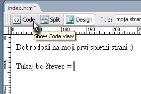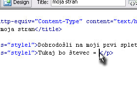 Vaš kuzor se še vedno nahaja na koncu teksta "Tukaj bo števec = ". Pritisnite tipki CTRL + V, da boste prej kopirano HTML kodo prilepili. |
