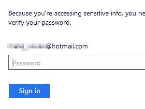 Iz varnostnih razlogov morate ponovno vpisati geslo svojega MS računa.