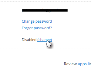 Najdite vrstico Two-step verification: Disabled ter kliknite change.