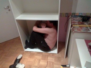 V naslovu sem omenil, da je omara lahko primerna tudi za igranje, zato sem spodnji del prilagodil svoji velikosti, da se lahko z otroci igramo skrivalnice na primer.