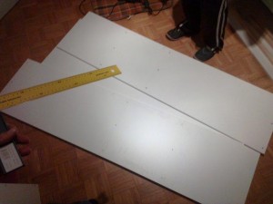 Ker bom naredil v omari dve polici, sem najprej s svinčnikom začrtal višine in globine za vijake.
