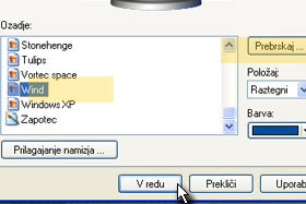 Spodaj izberite željeno ozadje (jaz sem izbral Wind) in potrdite spremembo na gumb V redu.