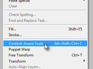 ![]() Kliknite sedaj na Edit in izberite Content-Aware Scale. |