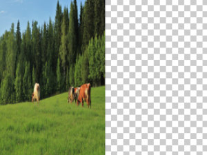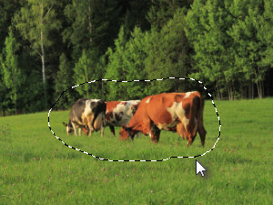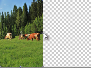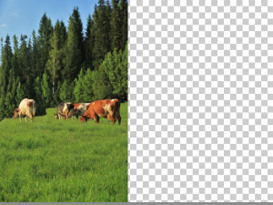 Jaz sem odprl travnik, kjer bom sliko po širini precej skrčil, krave pa bi rad ohranil nedotaknjene.