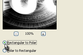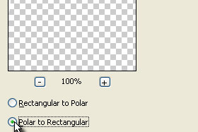Ko vas vpraša, ali naj layer rasterizira, kliknite na gumb OK. Določite v Polar to Rectangular in kliknite na gumb OK. |