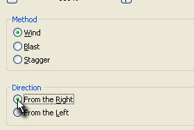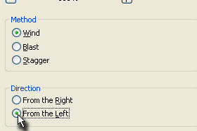 Methode določite Wind in v polju Direction določite From the Left. Kliknite na gumb OK. |