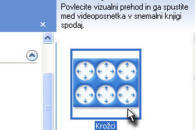 Prikažejo se vsi možni prehodi v programu Windows Movie Maker.