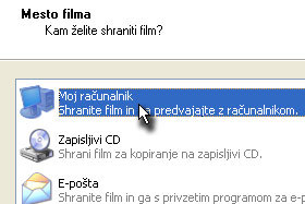 Film se je shranil v mapo Moji dokumenti in mapo Moji videi.