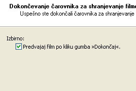 Označite Predvajaj film po kliku gumba Dokončaj in kliknite na gumb Dokončaj. |