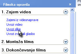 Kliknite na Uvozi video, če želite dodati filme. V tej lekciji vam bom tokrat pokazal, kako ustvarimo film iz fotografij. |